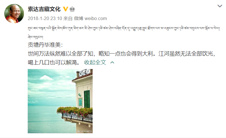 གུང་ཐང་བསྟན་པའི་སྒྲོན་མེས།ཆོས་ཀུན་ཅིག་ཅར་མི་ཤེས་ཀྱང་།།ཅི་ཙམ་ཤེས་བཞིན་དོན་དུ་འགྱུར།།ཆུ་ཀླུང་རྫོགས་པར་མ་འཐུངས་ཀྱང་།།ཅི་ཙམ་བཏུངས་པས་སྐོམ་པ་སེལ།།ཞེས་གསུངས།