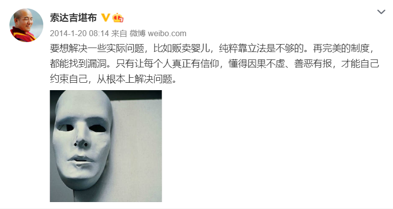 要想解决一些实际问题,比如贩卖婴儿,纯粹靠立法是不够的。再完美的制度,都能找到漏洞。只有让每个人真正有信仰,懂得因果不虚、善恶有报,才能自己约束自己,从根本上解决问题。