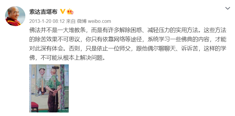 佛法并不是一大堆教条,而是有许多解除困惑、减轻压力的实用方法。这些方法的除苦效果不可思议,你只有依靠网络等途径,系统学习一些佛典的内容,才能对此深有体会。否则,只是依止一位师父,跟他偶尔聊聊天、诉诉苦,这样的学佛,不可能从根本上解决问题。