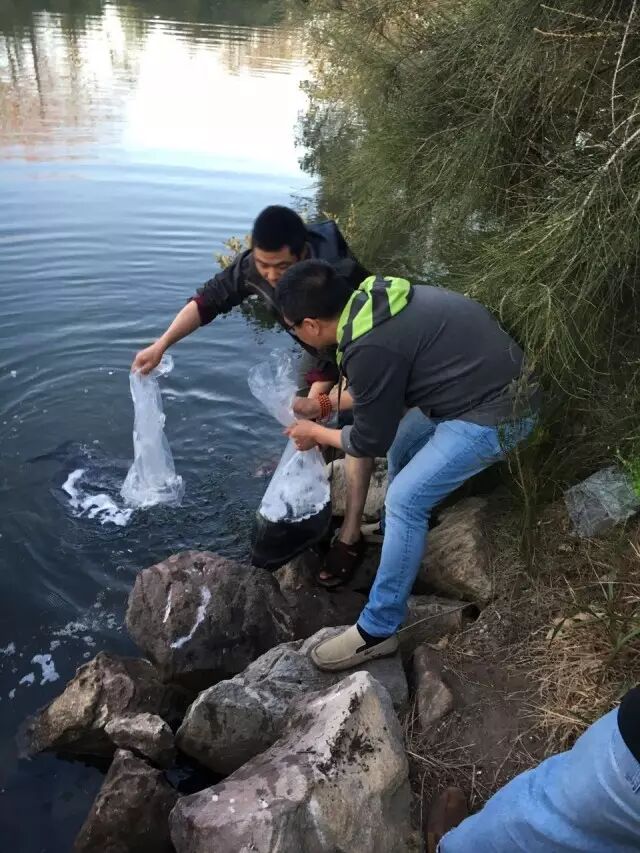 师兄们放生护生的热情非常高昂,很多小菩萨也参加了放生。整个放生过程井井有条,从采办到收集善款,从念诵仪轨到最终把河鳗送回属于他们的大自然,师兄们都做的非常认真仔细,争取在每一个细节上都做到如理如法。