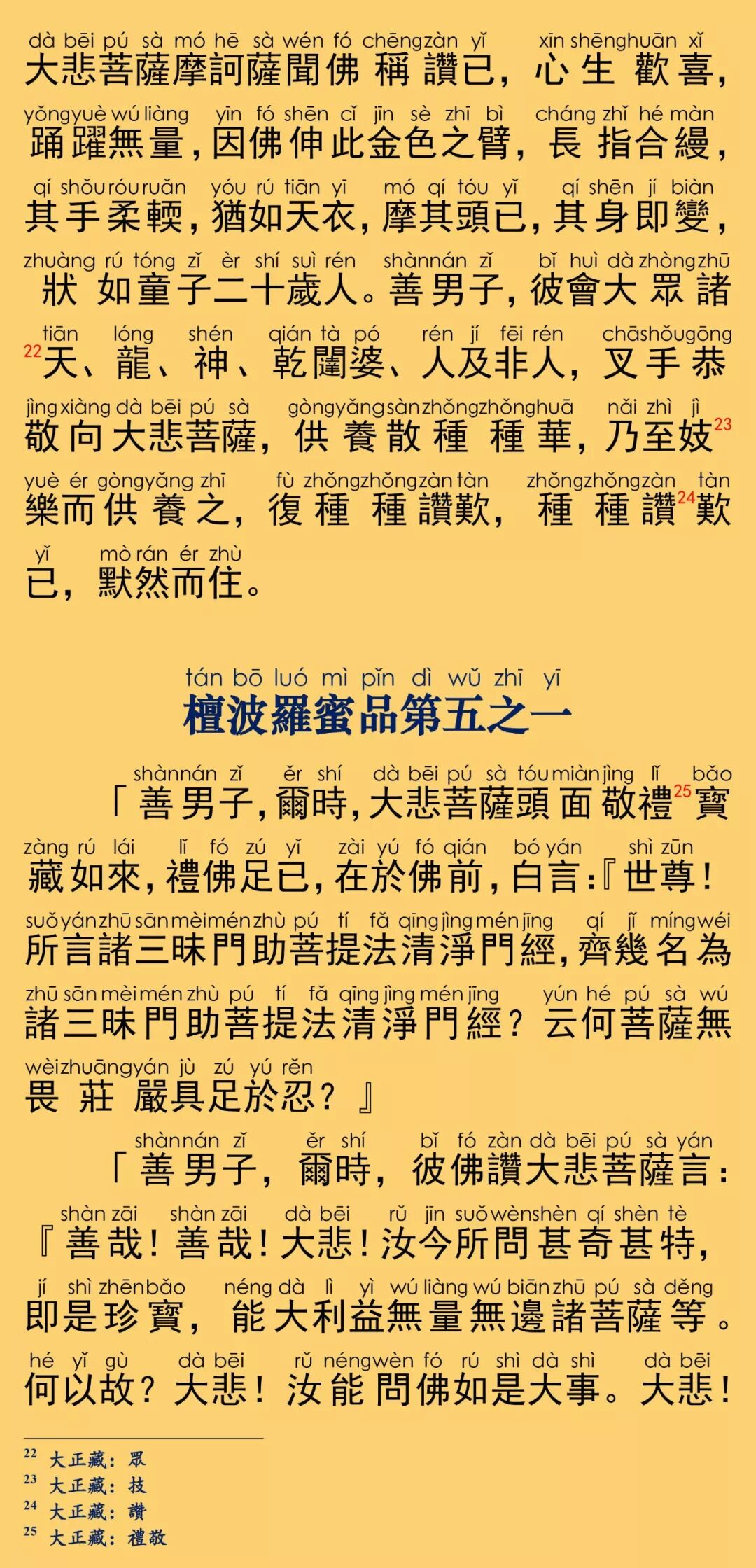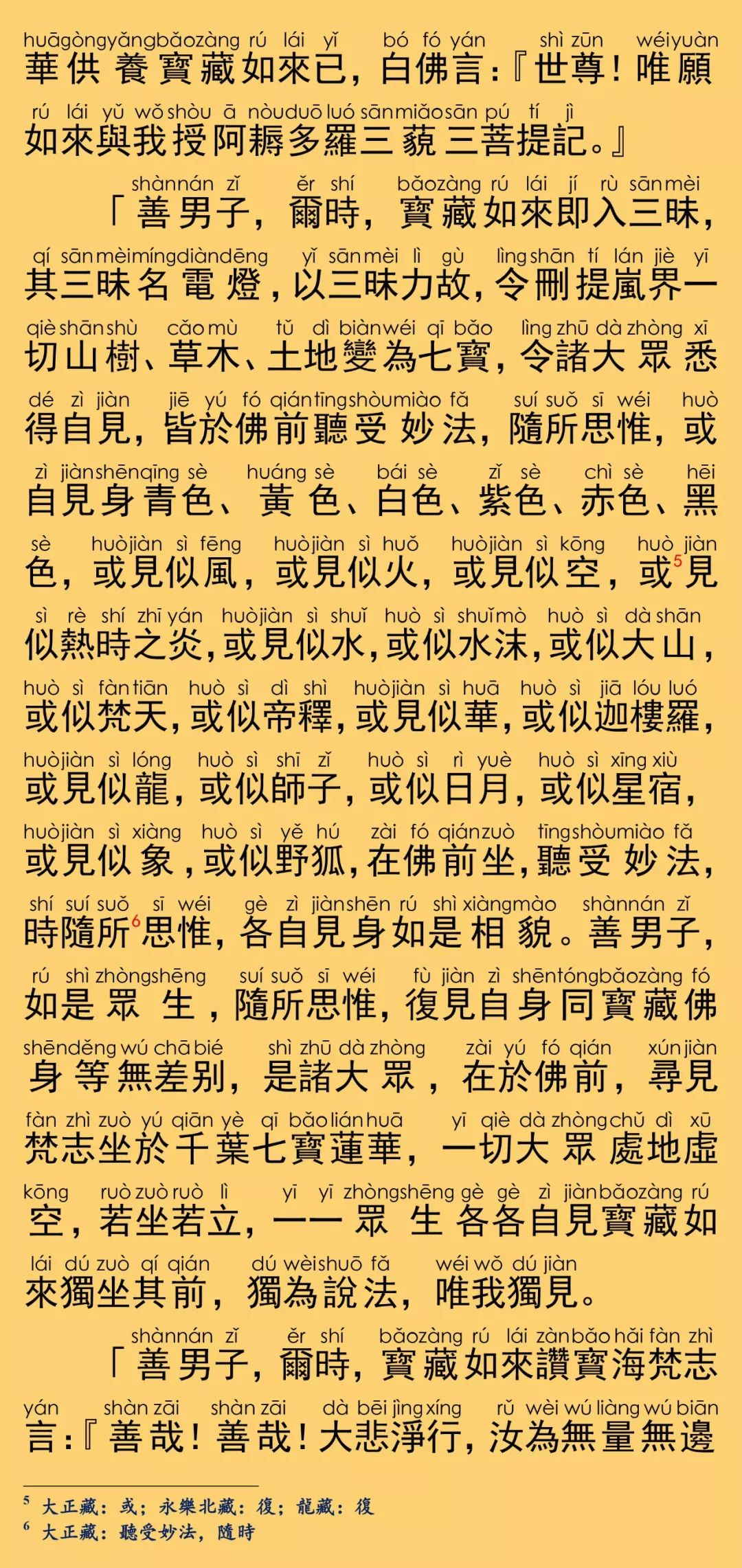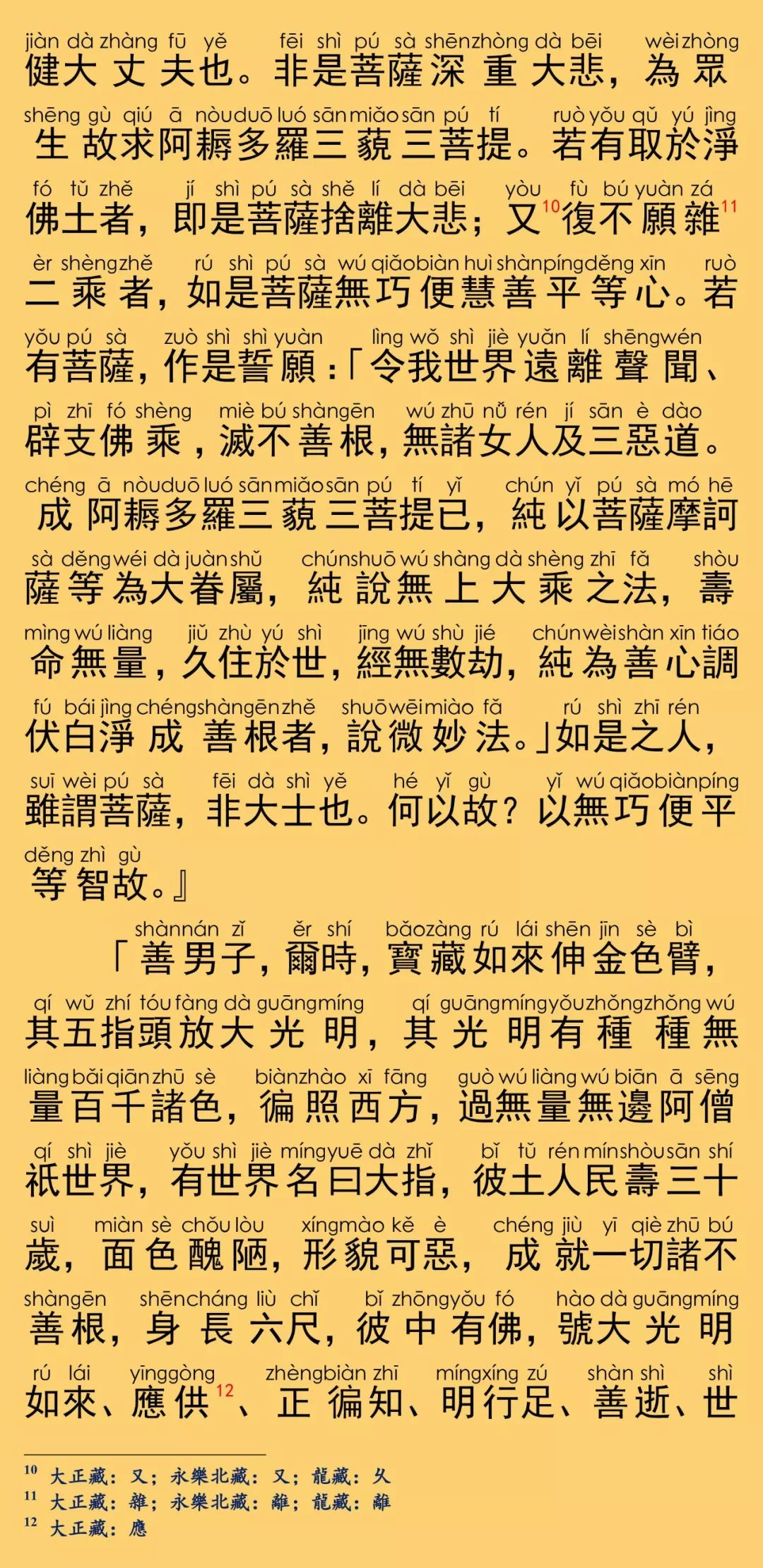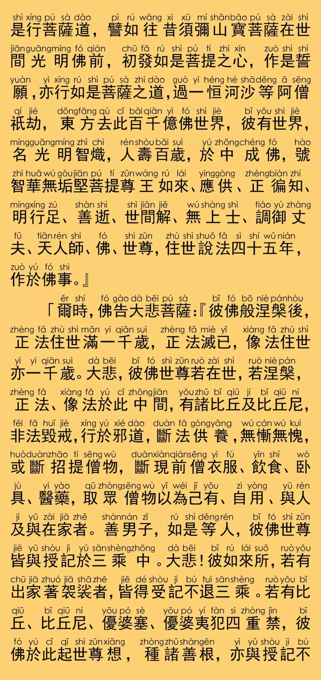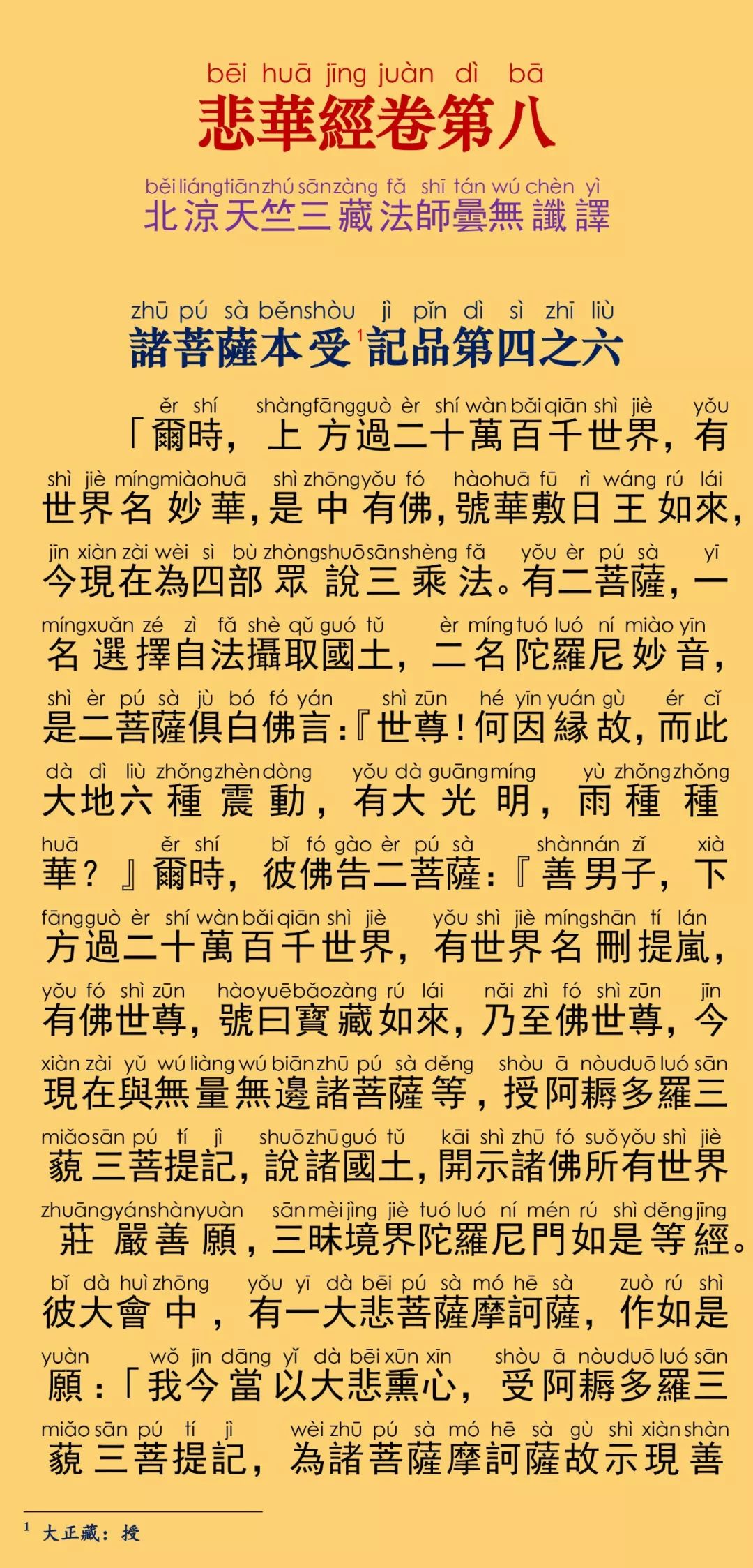 根据《乾隆大藏经》大乘五大部外重译经,第0138部,北凉天竺三藏法师昙无谶译《悲华经》原藏影印本校正注音。句读及注音仅供参考。设计排版说明:本注音佛经内容,由仁慧草堂编辑设计制作,如需转载请联系作者公众号,特此说明。