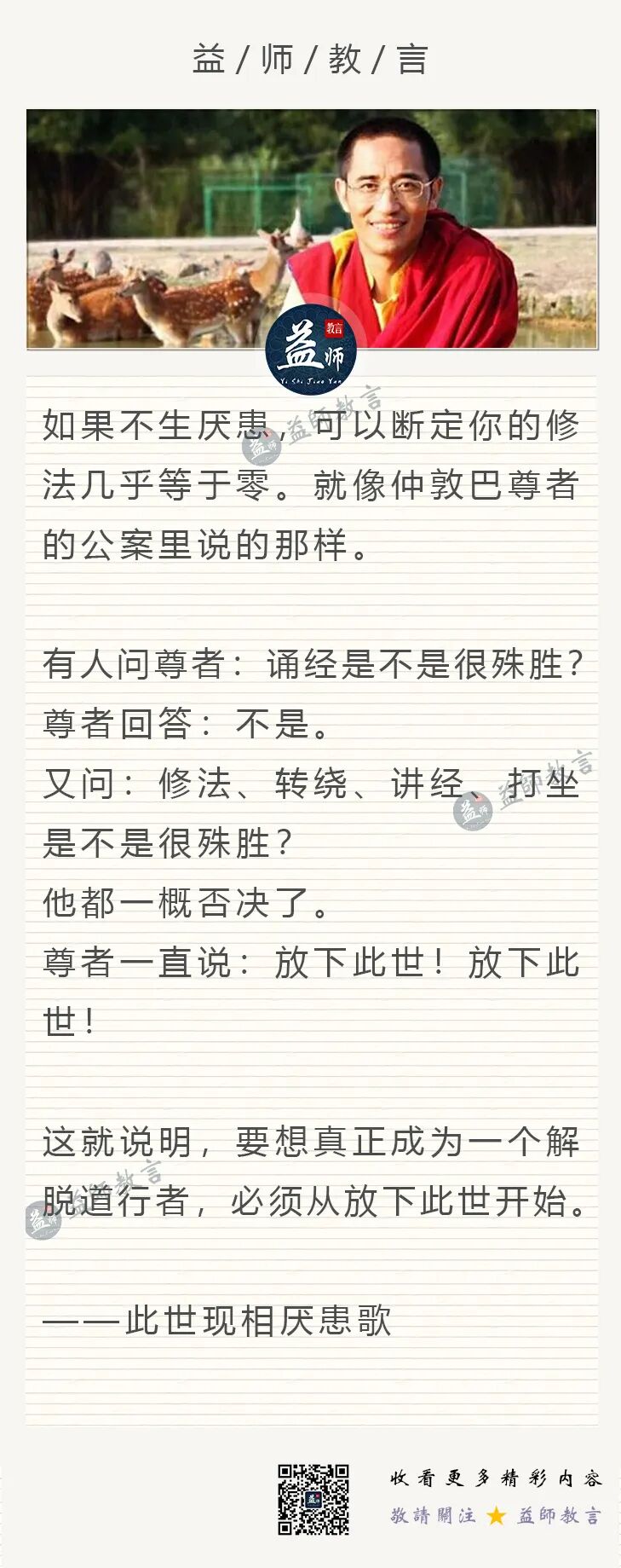 零散收录 >> 不生厌患心,你修一切法都等于零