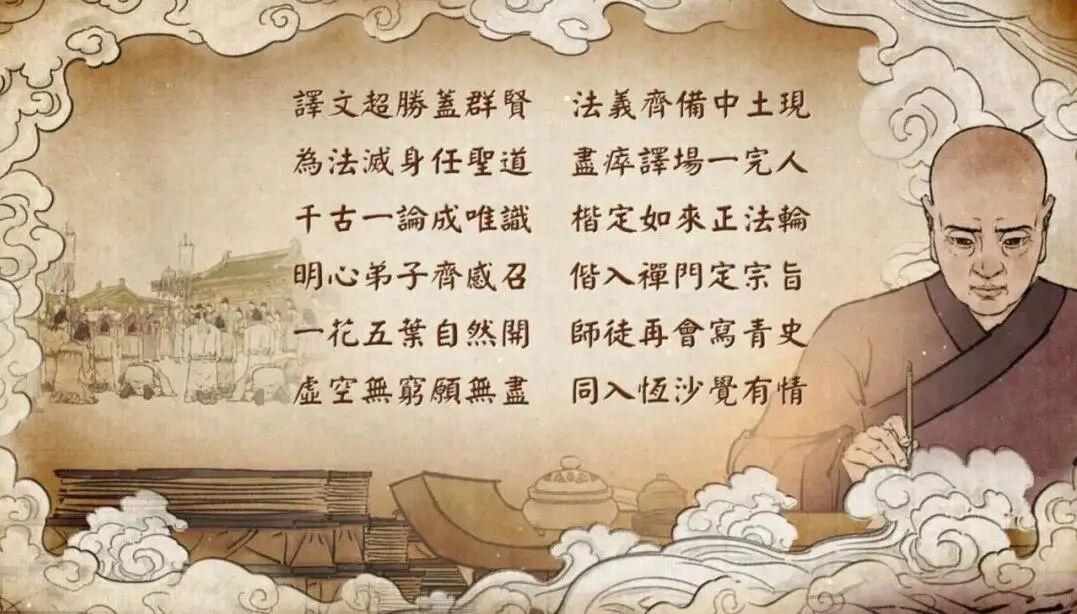 玄奘大师共译出佛教经论47部,1335卷,每卷万字左右,合计1335万字,占去整个唐代译经总数的一半以上,相当于中国历史上另外三大翻译家(鸠摩罗什大师、真谛大师、不空大师)译经总数的一倍多。