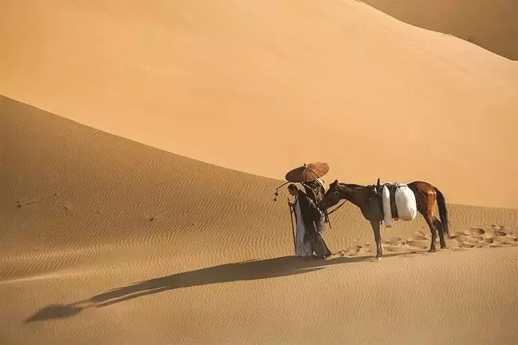 繁星满天,孤独的身影在用最后的力气向西挺进,跌跌撞撞地又起身上路。途中,老马自己调了头,怎么也叫不回,奇迹就在这里降临,玄奘跟着走了几里,居然见到了一片绿洲。池水甘甜,清澈如镜……玄奘得到了续命的水。