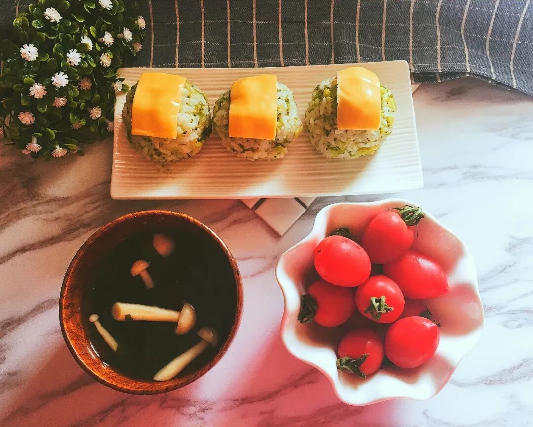 西兰花芝士饭团+快手蘑菇汤