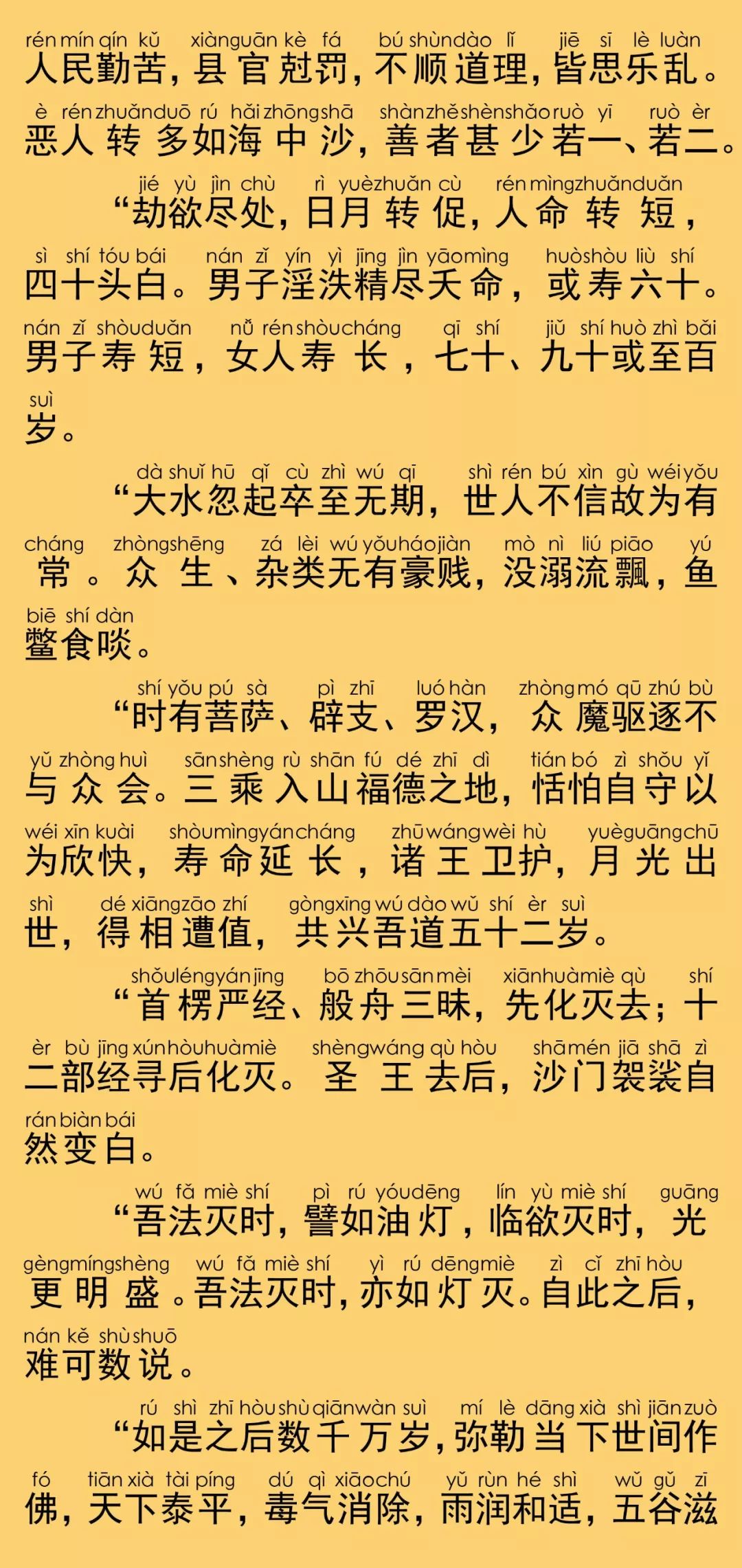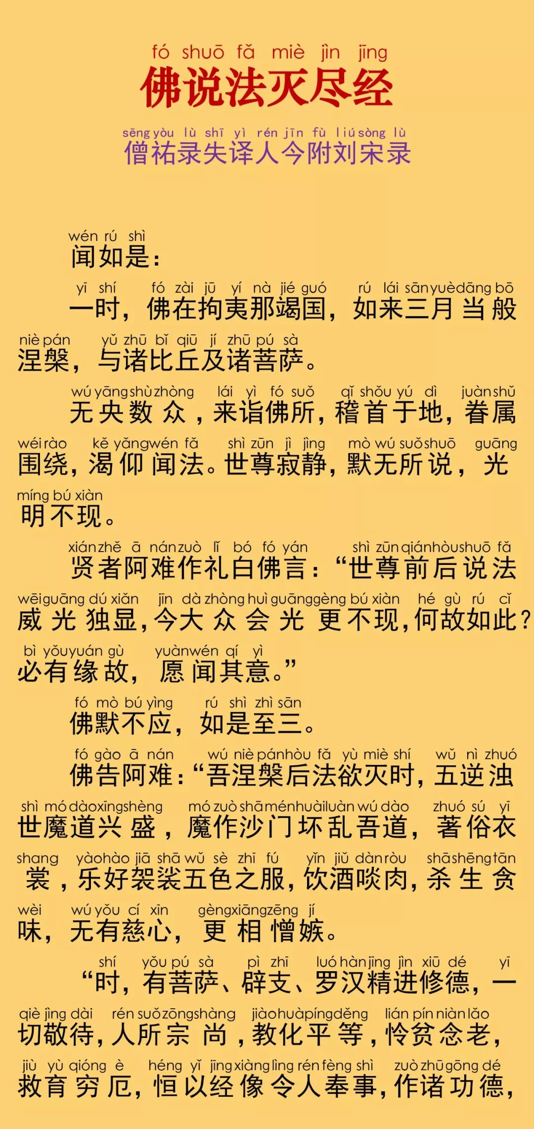 根据《乾隆大藏经》大乘单译经,第0466部《佛说法灭尽经》原藏影印本校正注音。句读、注音及诵经音频仅供参考。后附本经PDF电子书下载。设计排版说明:本注音佛经内容,由仁慧草堂编辑设计制作,如需转载请联系作者公众号,特此说明。