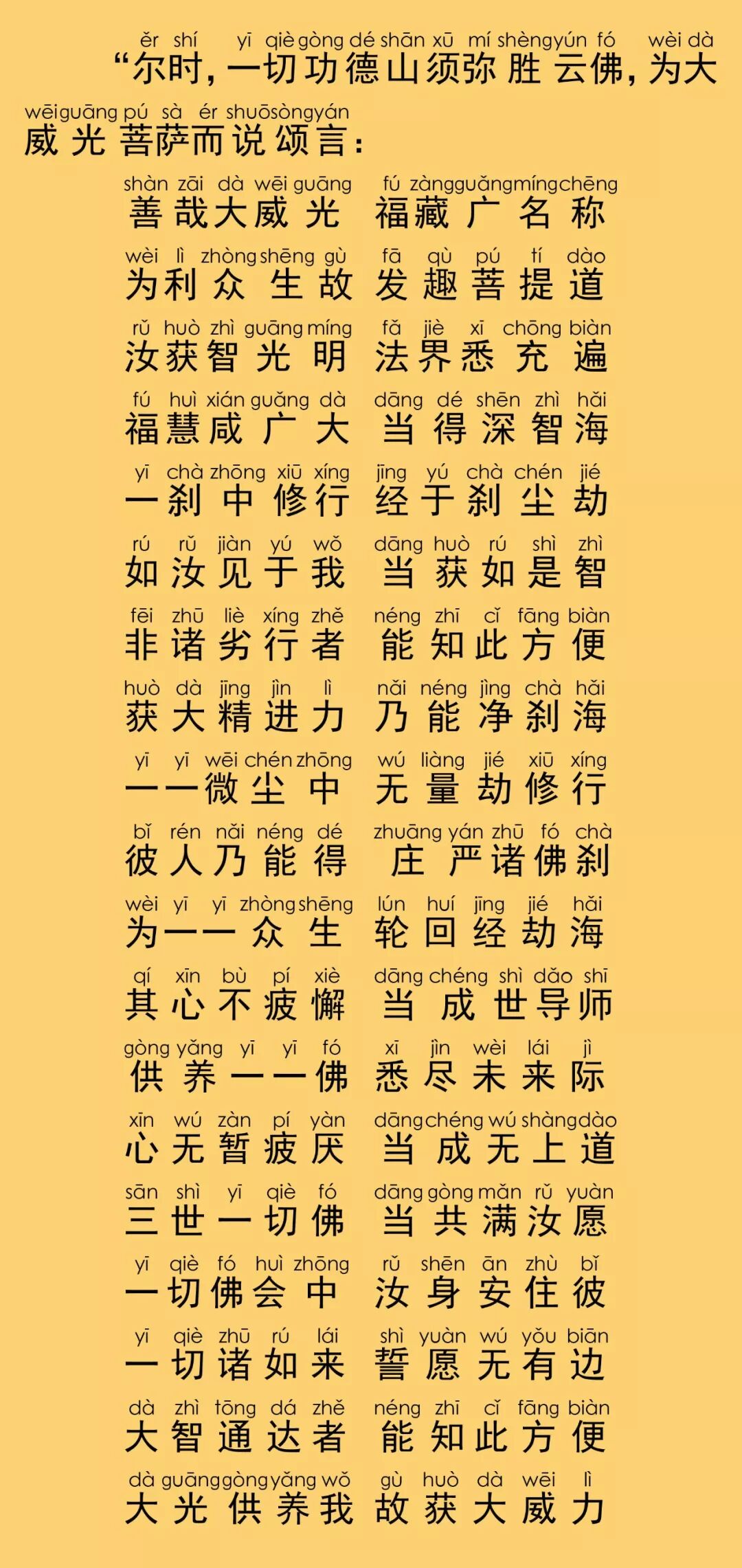 根据《乾隆大藏经》大乘华严部,第0084部,唐于阗国三藏沙门实叉难陀译《大方广佛华严经》(80卷)影印本校正注音。读诵仪轨取自福建莆田广化寺《大方广佛华严经》印本,华严字母根据柏林禅寺《华严字母》印本校正,标点符号及注音仅供参考。设计排版说明:本注音佛经内容,由仁慧草堂编辑设计制作,如需转载请联系作者公众号,特此说明。