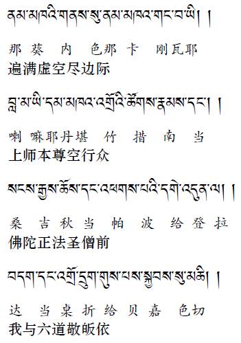 然后开始念皈依偈颂,念藏文汉文都可以: