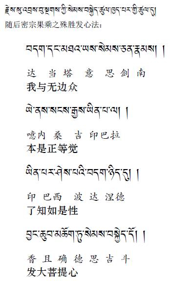 如果按照密宗的发心仪轨,偈颂是: