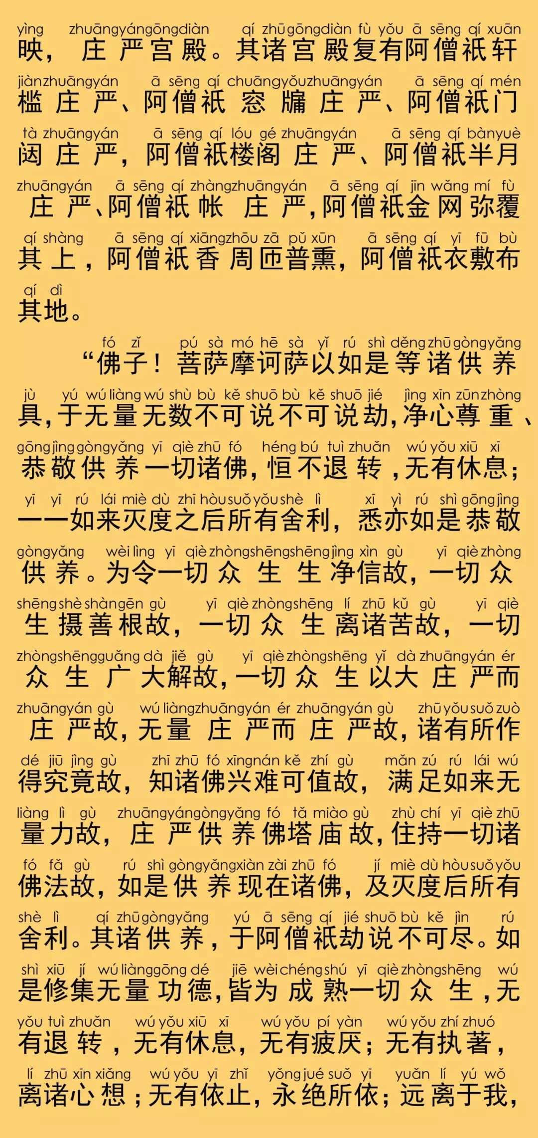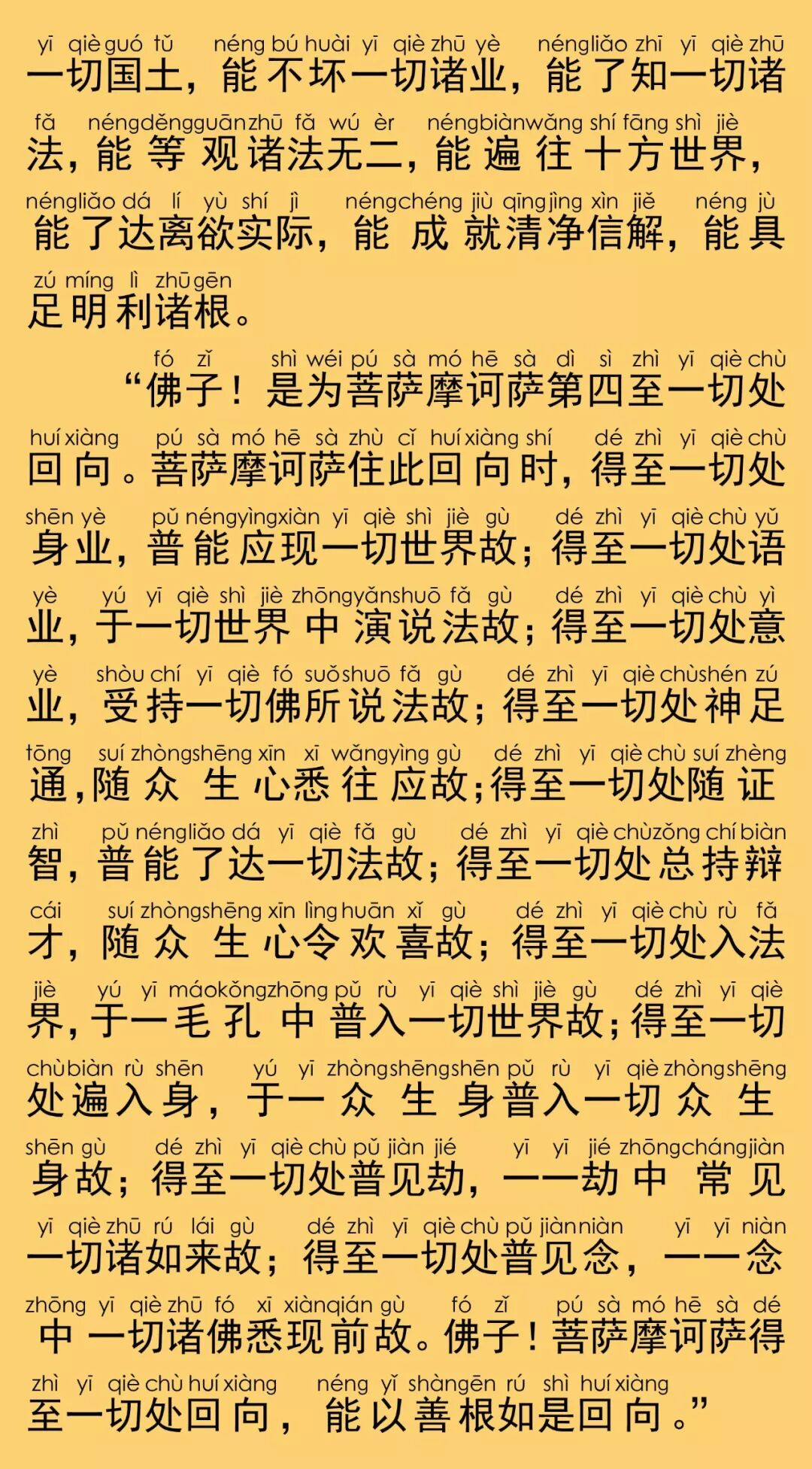 根据《乾隆大藏经》大乘华严部,第0084部,唐于阗国三藏沙门实叉难陀译《大方广佛华严经》(80卷)原藏影印本校正注音。读诵仪轨取自福建莆田广化寺《大方广佛华严经》印本,华严字母根据柏林禅寺《华严字母》印本校正,标点符号及注音仅供参考。设计排版说明:本注音佛经内容,由仁慧草堂编辑设计制作,如需转载请联系作者公众号,特此说明。