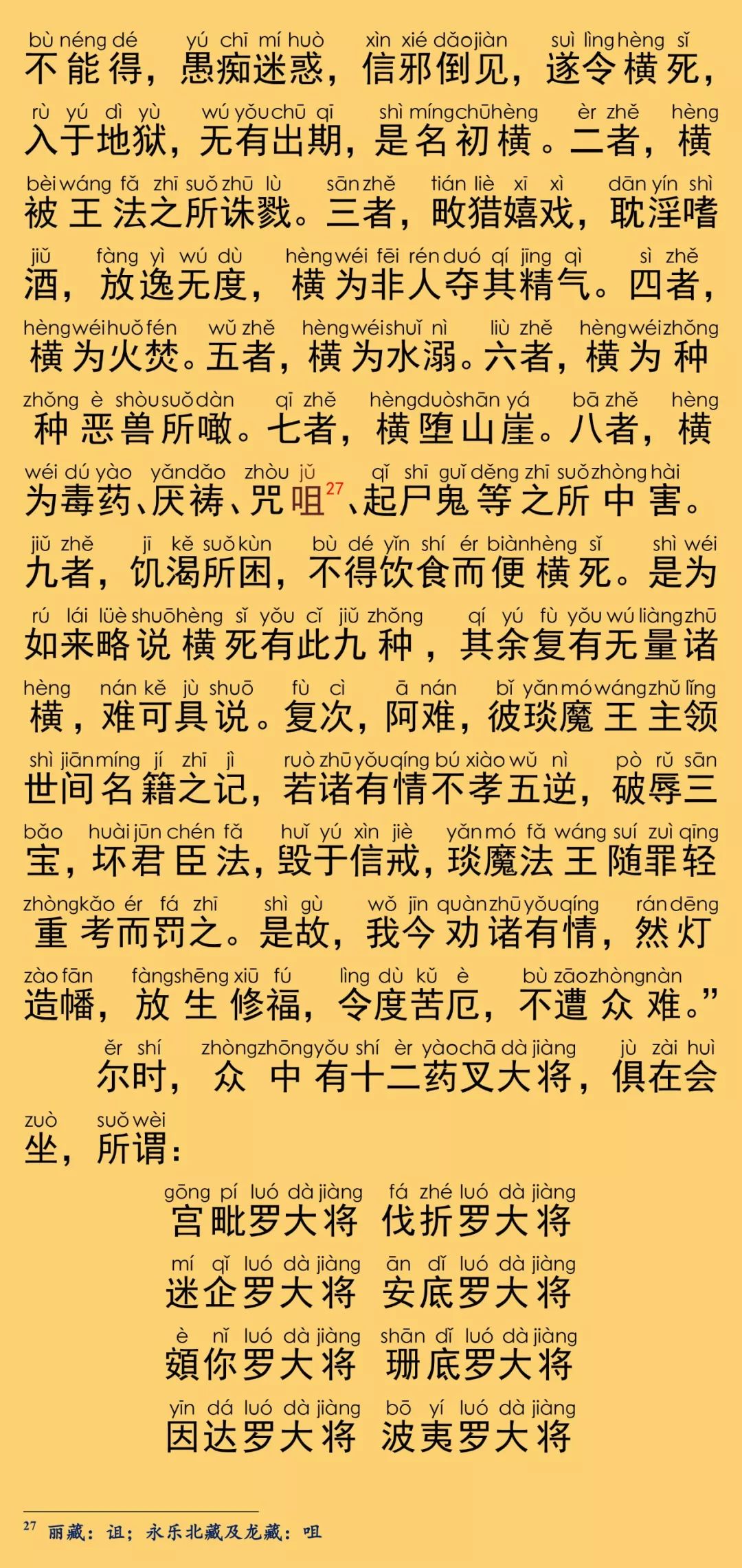 根据根据《乾隆大藏经》大乘五大部外重译经,第0167部,唐三藏法师玄奘译《药师琉璃光如来本愿功德经》。句读及注音仅供参考。特此说明。