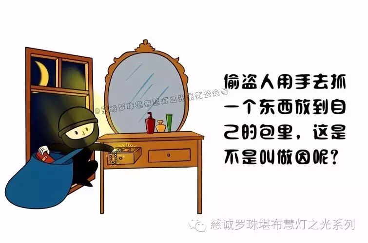 偷盗人用手去抓一个东西放到自己的包里,这是不是叫做因呢?