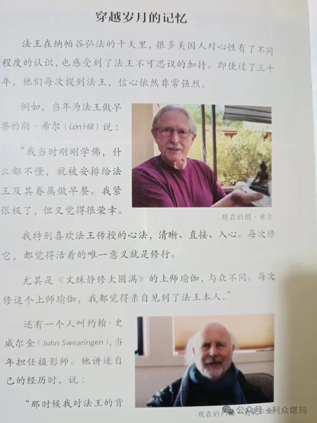 弘法的十天里,很多美国人对心性有了不去同程度的认识的, 也感受到了法王不可思议的加持。 即使过了三十年, 他们每一次提到法王的时候,信心依然是非常强烈的。就遇到不是很多,我出去的时候也遇到一些,那后来我们也找了一些人问了一下。但确实好像法王看起来十天的弘法,但是你们可能也感觉得到。比如当年法王做早餐的叫做希尔 ,他那个时候很年轻。我看到了照片我吓一跳,可能我的照片给他看的话他也会吓一跳 。