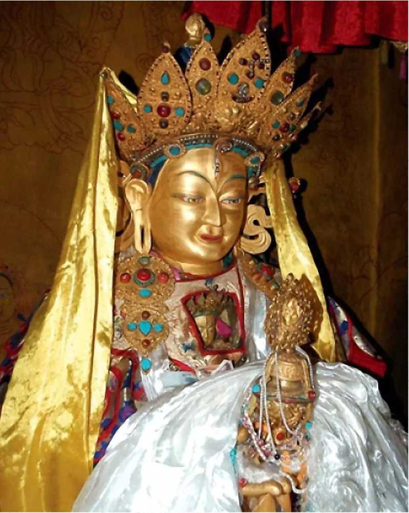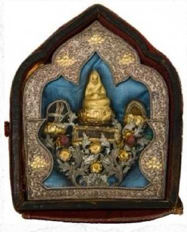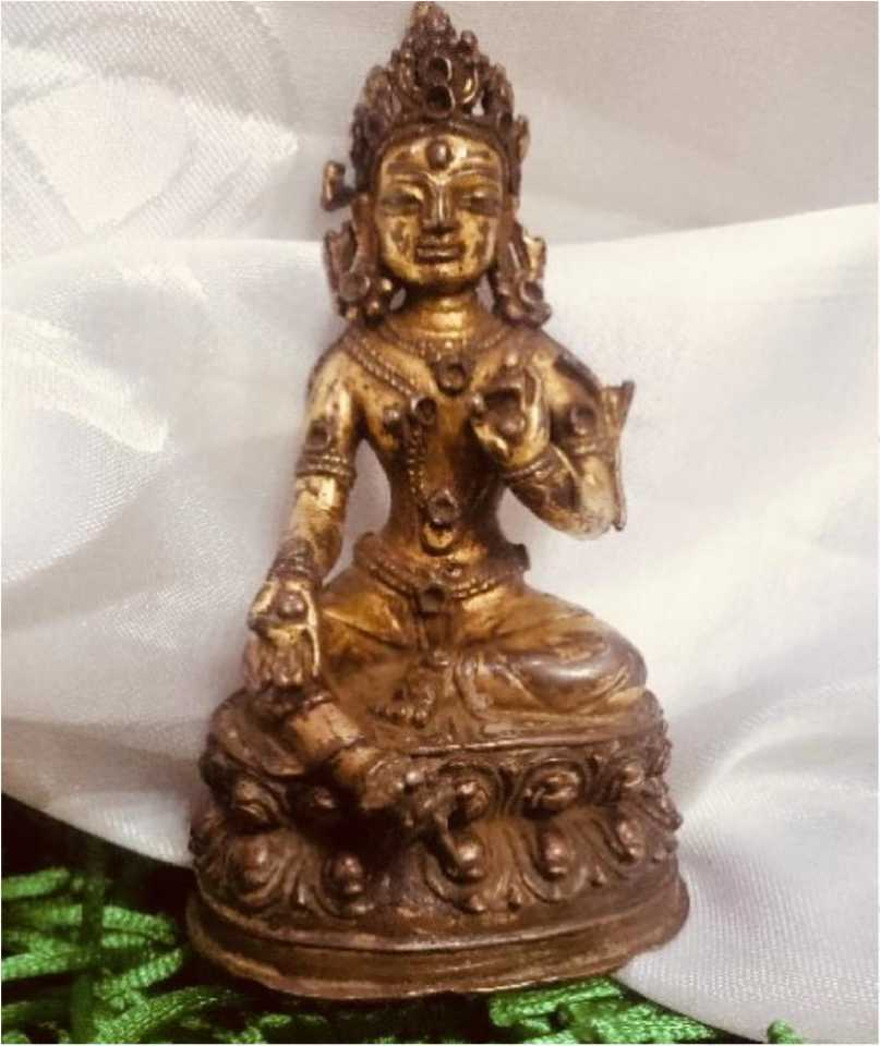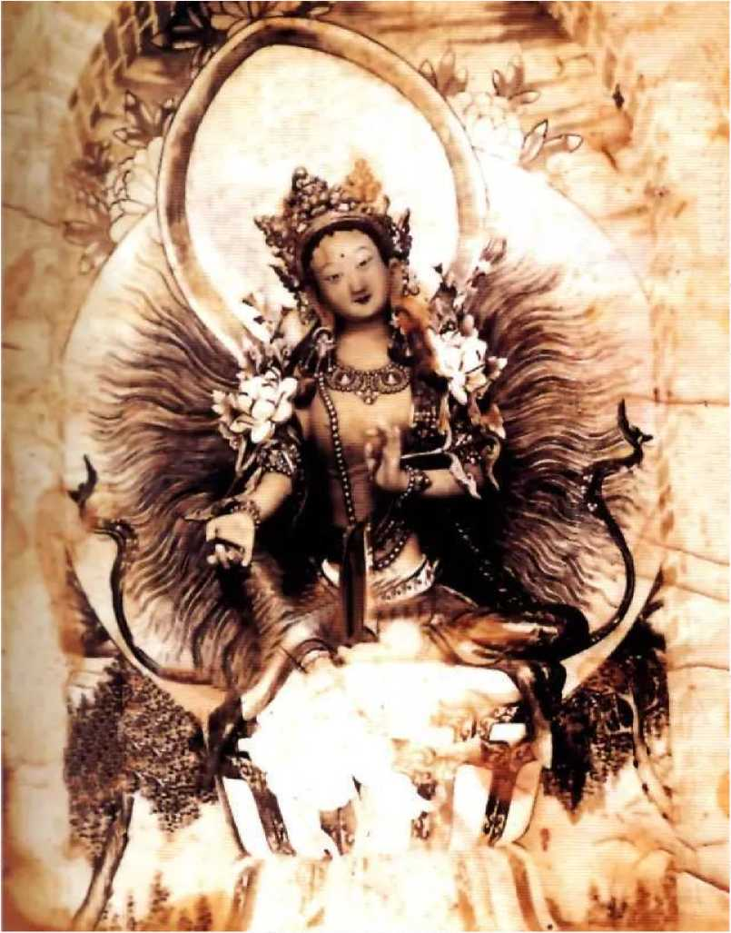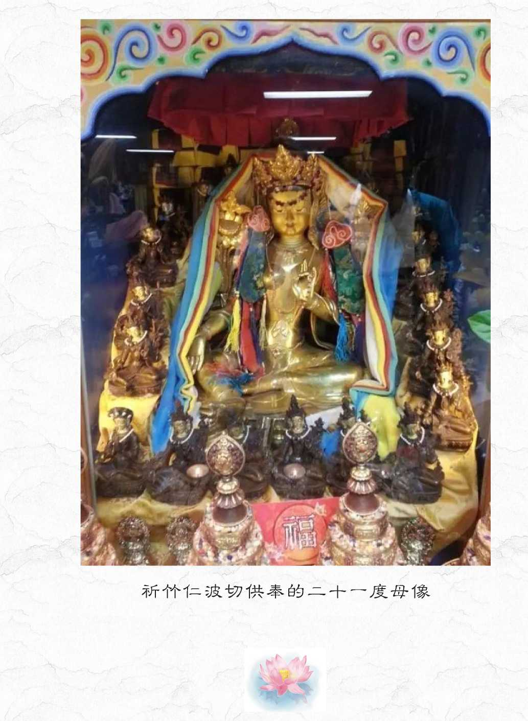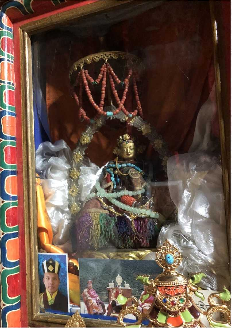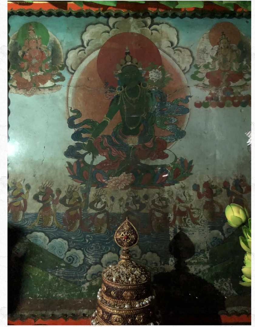 莲花生大师亲自伏藏的五尊莲师像之一,加持力巨大,佛像手杖为新造。"莲师如等我像"(雅砻歇扎莲师像),供奉于拉萨山南昌珠寺。在色达喇荣举办的一次长寿法会的第七天早上,在晋美彭措法王的法桌上有一尊8厘米左右高的莲师像。法王说:"这是刚才护法送过来的,是伏藏品。伏藏品有两种,一种需要个人亲自去开掘,一种则是由护法送过来的"。法王举起莲师像说:"给你们看看,见到的人必定能够解脱!这是咱们共同的福报"。这尊佛像非人工打凿,形象生动,栩栩如生,内有舍利。列绕朗巴尊者的伏藏莲师像,此像此前只在木猴年,每60年对外展示一次。为利益末法时期众生特开许发布。法王如意宝装藏开光,供奉于五台山菩萨顶祖师殿,是藏传佛教在汉地弘扬的重要缘起。莲师亲手制成此像,如同莲师的拇指太小。是不共加持的圣物,凡能见到、幷持大士心咒、恭敬礼拜者,均能得莲师慧光加持,将诸灾障消除,増长福慧,行者必能灭障解脱,毕竟成佛。莲师离开藏地时,亲塑此像赠予赤松德赞王之子穆赤赞普,由宗萨钦哲旺波取藏,现存放于印度比尔。"对此祈祷与我不分离,若无怀疑速疾获加持,与此殊胜替身结缘众,今生来世大利无勤生,是故诸众此意记心间。"——摘自莲师伏藏文百位伏藏王之初祖一咕鲁却旺伏藏大师自伏藏取出之莲师二十五替身之一,过去葛陀总寺上师密集金刚坛城之主尊、见卽解脱身宝。莲师在印度萨哈尔国时,被国王哲拉捆绑活活焚烧,历经七天七夜后莲师金刚之身竟然毫发无伤,此时一位美少年如如安坐在大火中自生莲花的花蕊上,当时国王惊奇不己,顿时生起广大信心,于是马上下令,打开皇家宝库,取出无数珍宝及国王宝冠,连同国政大臣和眷属等一并供养给了珍贵的师尊莲师,当时国王所献上的那顶宝冠,就是现在所知的"见卽解脱帽"。是眞正的"金刚萨垛"降临人间,供奉于喇荣五明佛学院。金刚萨垛百字明是忏悔王,金刚萨垛心咒是百字明之精华,以信心认眞修持一切罪障咎可淸净。凡见此像者即同现量观见观音圣颜及布达拉淸净剎土之无量宮殿, 仅睹一面既能彻底解脱包括无间地狱在内八大地狱之苦及八种怖畏乃至五无间罪。一见此像既可淸净舍法罪,谤佛菩萨等太小一切罪业,并积累如百千大梵天之福德且获致世间所有之善根。临命终时,现量目睹观音慈面,并得殊胜心之安宁,死后顿生极乐界,又远离一切障难,且能忆念五十百千宿世之事,直至菩提果间,今生乃轮回之最后一世。这尊度母心间有白宝石,对之祈祷有求必应,非常灵验,也称为满愿度母。尊者终生修持度母法门,随身携带的这尊度母佛像更常常开口话, 指导尊者弘法。供奉于拉萨卓玛拉康。文成公主出嫁将佛祖十二岁等身像带到了西藏。太宗看见佛位空着,恼于在此补供什么佛像,这时度母开口说话:"不必供奉其他像,我来代替释迦佛敎化、普度众生吧。”由此广仁寺成为汉地唯一绿度母主道场。能言度母,此尊度母建议阿底峡尊者前往西藏,当今藏传及我们能学习藏传都与她有极深的因缘。这尊能言绿度母相传是在下密院的墙壁上自然浮現,面貌身段仪态庄严、丰腴、美丽,乃下密院镶寺之宝。此度母是伏藏度母,她有三种含义:1.右肩剑,代表智慧,所以是智慧母。2.左肩宝瓶,代表事业,所以是事业母。3.度母颜色为红色,代表自在,所以是自在母。莫扎法王亲口授记:"与此文武百尊坛城及万佛结缘者,必定往生西方极乐世界!凡有缘见到此坛城,甚至是照片,起一念恭敬者,不堕三恶道,最多七世为人,第八世成佛。”是非常殊胜的伏藏品,加持力极大!顶果钦哲法王亲自为其作注,有见解脱,消除一切灾难,心想事成之功德利益安巴根特为五方文殊师利菩萨密意化现之伏藏,可淸净三业忏罪集福増慧开智的见解脱,故所有见到此瑞图的众生,都终究必将脱离苦海,归于佛道。对末法时代的众生产生不可估量的利益。系由空行文字所写,由十七世纪时大掘藏师敏久多吉上师取藏。见卽解脱咒,凡见忆,礼赞,供奉者其功德:1、五毒将被淸净。2、将不堕下三道。3、将自恶道中解脱。4、将自业果中解脱。5、将自轮回怖畏中解脱。