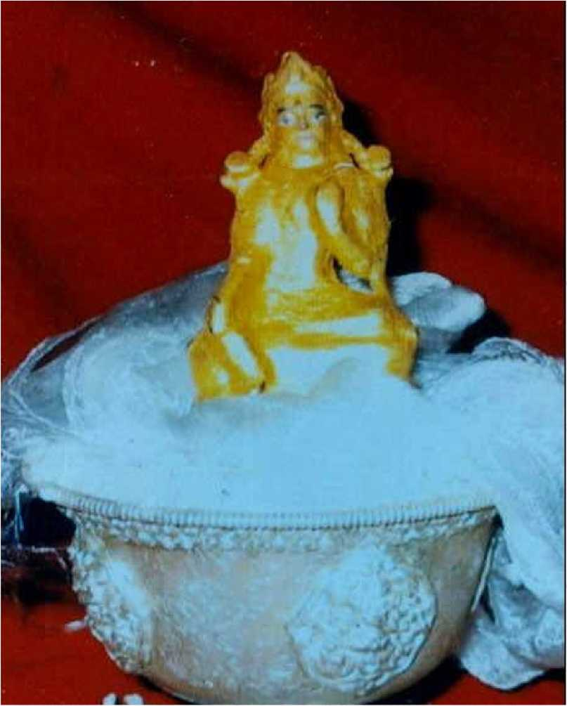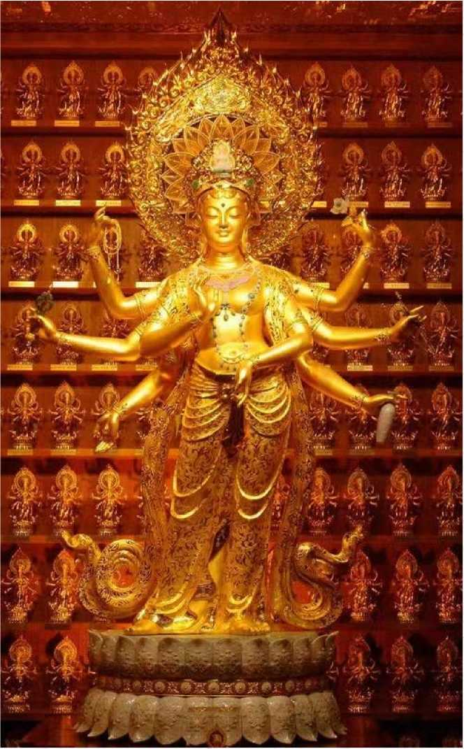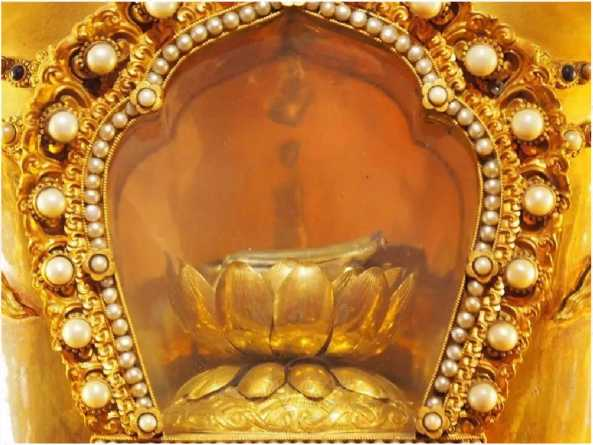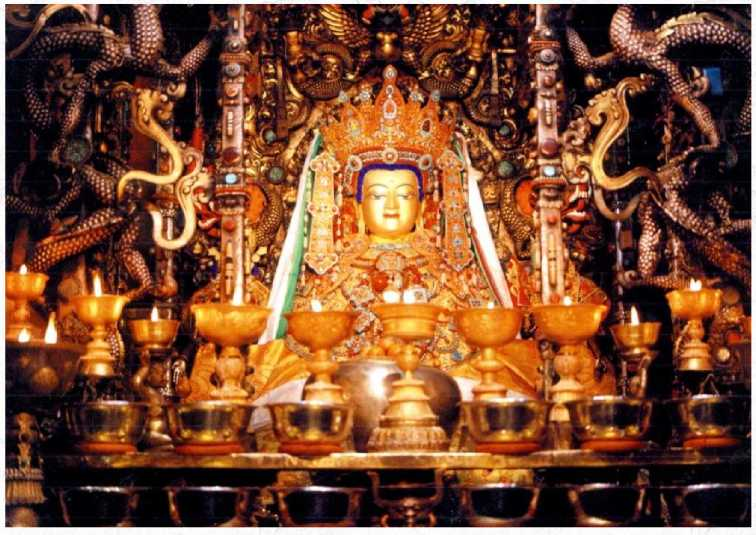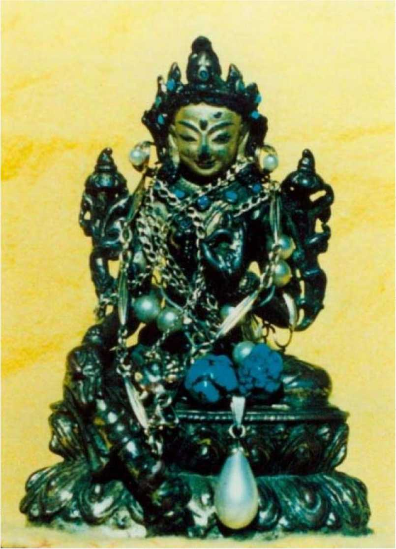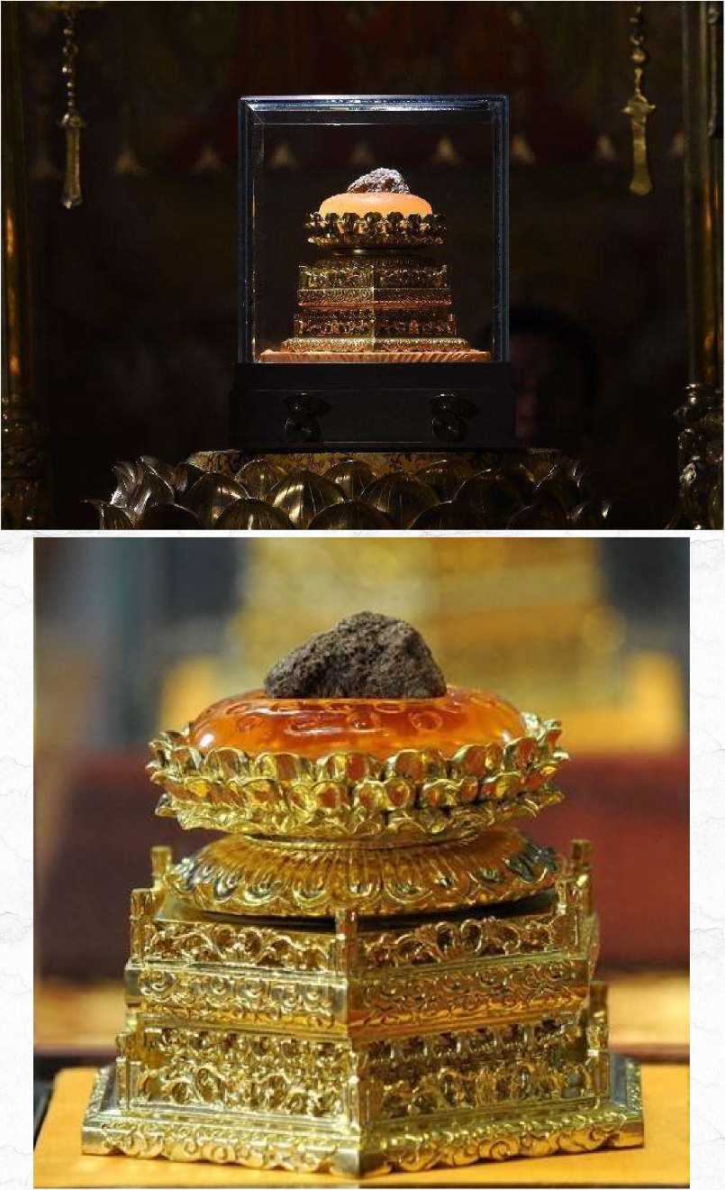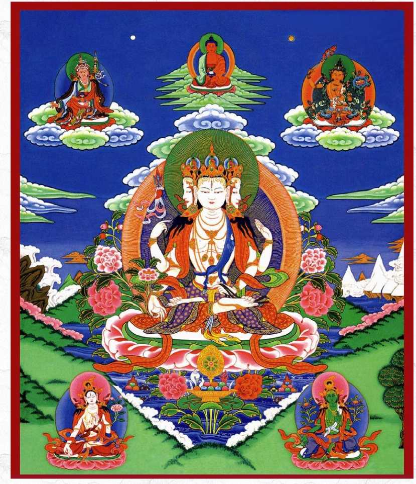 莲花生大师亲自伏藏的五尊莲师像之一,加持力巨大,佛像手杖为新造。"莲师如等我像"(雅砻歇扎莲师像),供奉于拉萨山南昌珠寺。在色达喇荣举办的一次长寿法会的第七天早上,在晋美彭措法王的法桌上有一尊8厘米左右高的莲师像。法王说:"这是刚才护法送过来的,是伏藏品。伏藏品有两种,一种需要个人亲自去开掘,一种则是由护法送过来的"。法王举起莲师像说:"给你们看看,见到的人必定能够解脱!这是咱们共同的福报"。这尊佛像非人工打凿,形象生动,栩栩如生,内有舍利。列绕朗巴尊者的伏藏莲师像,此像此前只在木猴年,每60年对外展示一次。为利益末法时期众生特开许发布。法王如意宝装藏开光,供奉于五台山菩萨顶祖师殿,是藏传佛教在汉地弘扬的重要缘起。莲师亲手制成此像,如同莲师的拇指太小。是不共加持的圣物,凡能见到、幷持大士心咒、恭敬礼拜者,均能得莲师慧光加持,将诸灾障消除,増长福慧,行者必能灭障解脱,毕竟成佛。莲师离开藏地时,亲塑此像赠予赤松德赞王之子穆赤赞普,由宗萨钦哲旺波取藏,现存放于印度比尔。"对此祈祷与我不分离,若无怀疑速疾获加持,与此殊胜替身结缘众,今生来世大利无勤生,是故诸众此意记心间。"——摘自莲师伏藏文百位伏藏王之初祖一咕鲁却旺伏藏大师自伏藏取出之莲师二十五替身之一,过去葛陀总寺上师密集金刚坛城之主尊、见卽解脱身宝。莲师在印度萨哈尔国时,被国王哲拉捆绑活活焚烧,历经七天七夜后莲师金刚之身竟然毫发无伤,此时一位美少年如如安坐在大火中自生莲花的花蕊上,当时国王惊奇不己,顿时生起广大信心,于是马上下令,打开皇家宝库,取出无数珍宝及国王宝冠,连同国政大臣和眷属等一并供养给了珍贵的师尊莲师,当时国王所献上的那顶宝冠,就是现在所知的"见卽解脱帽"。是眞正的"金刚萨垛"降临人间,供奉于喇荣五明佛学院。金刚萨垛百字明是忏悔王,金刚萨垛心咒是百字明之精华,以信心认眞修持一切罪障咎可淸净。凡见此像者即同现量观见观音圣颜及布达拉淸净剎土之无量宮殿, 仅睹一面既能彻底解脱包括无间地狱在内八大地狱之苦及八种怖畏乃至五无间罪。一见此像既可淸净舍法罪,谤佛菩萨等太小一切罪业,并积累如百千大梵天之福德且获致世间所有之善根。临命终时,现量目睹观音慈面,并得殊胜心之安宁,死后顿生极乐界,又远离一切障难,且能忆念五十百千宿世之事,直至菩提果间,今生乃轮回之最后一世。这尊度母心间有白宝石,对之祈祷有求必应,非常灵验,也称为满愿度母。尊者终生修持度母法门,随身携带的这尊度母佛像更常常开口话, 指导尊者弘法。供奉于拉萨卓玛拉康。文成公主出嫁将佛祖十二岁等身像带到了西藏。太宗看见佛位空着,恼于在此补供什么佛像,这时度母开口说话:"不必供奉其他像,我来代替释迦佛敎化、普度众生吧。”由此广仁寺成为汉地唯一绿度母主道场。能言度母,此尊度母建议阿底峡尊者前往西藏,当今藏传及我们能学习藏传都与她有极深的因缘。这尊能言绿度母相传是在下密院的墙壁上自然浮現,面貌身段仪态庄严、丰腴、美丽,乃下密院镶寺之宝。此度母是伏藏度母,她有三种含义:1.右肩剑,代表智慧,所以是智慧母。2.左肩宝瓶,代表事业,所以是事业母。3.度母颜色为红色,代表自在,所以是自在母。莫扎法王亲口授记:"与此文武百尊坛城及万佛结缘者,必定往生西方极乐世界!凡有缘见到此坛城,甚至是照片,起一念恭敬者,不堕三恶道,最多七世为人,第八世成佛。”是非常殊胜的伏藏品,加持力极大!顶果钦哲法王亲自为其作注,有见解脱,消除一切灾难,心想事成之功德利益安巴根特为五方文殊师利菩萨密意化现之伏藏,可淸净三业忏罪集福増慧开智的见解脱,故所有见到此瑞图的众生,都终究必将脱离苦海,归于佛道。对末法时代的众生产生不可估量的利益。系由空行文字所写,由十七世纪时大掘藏师敏久多吉上师取藏。见卽解脱咒,凡见忆,礼赞,供奉者其功德:1、五毒将被淸净。2、将不堕下三道。3、将自恶道中解脱。4、将自业果中解脱。5、将自轮回怖畏中解脱。