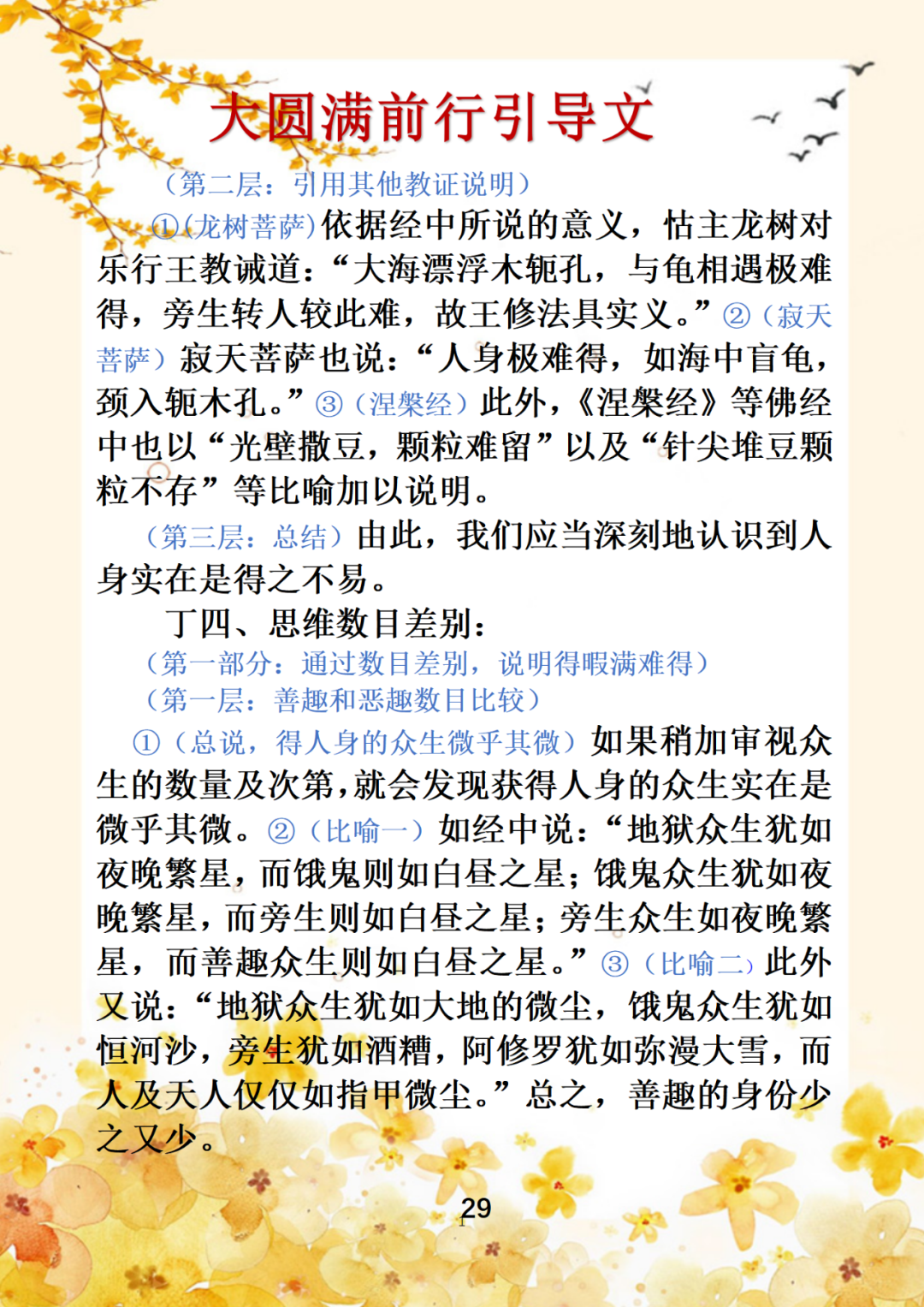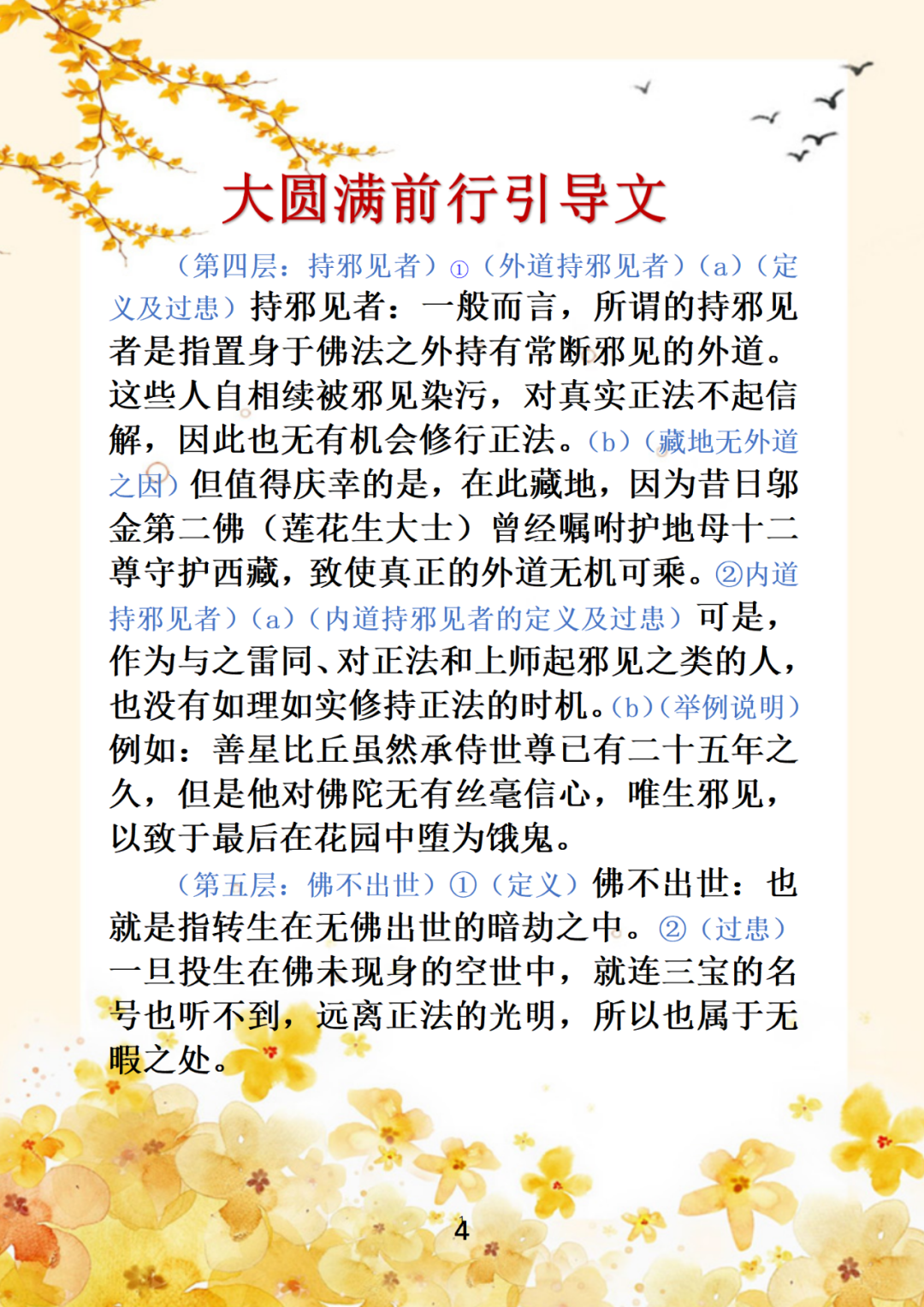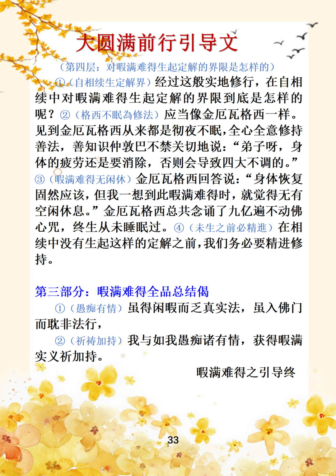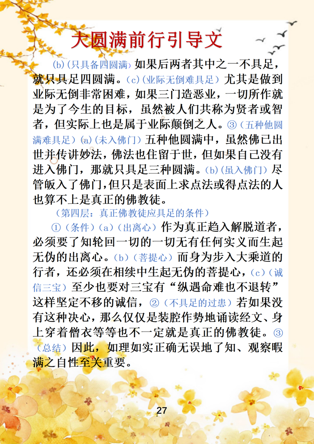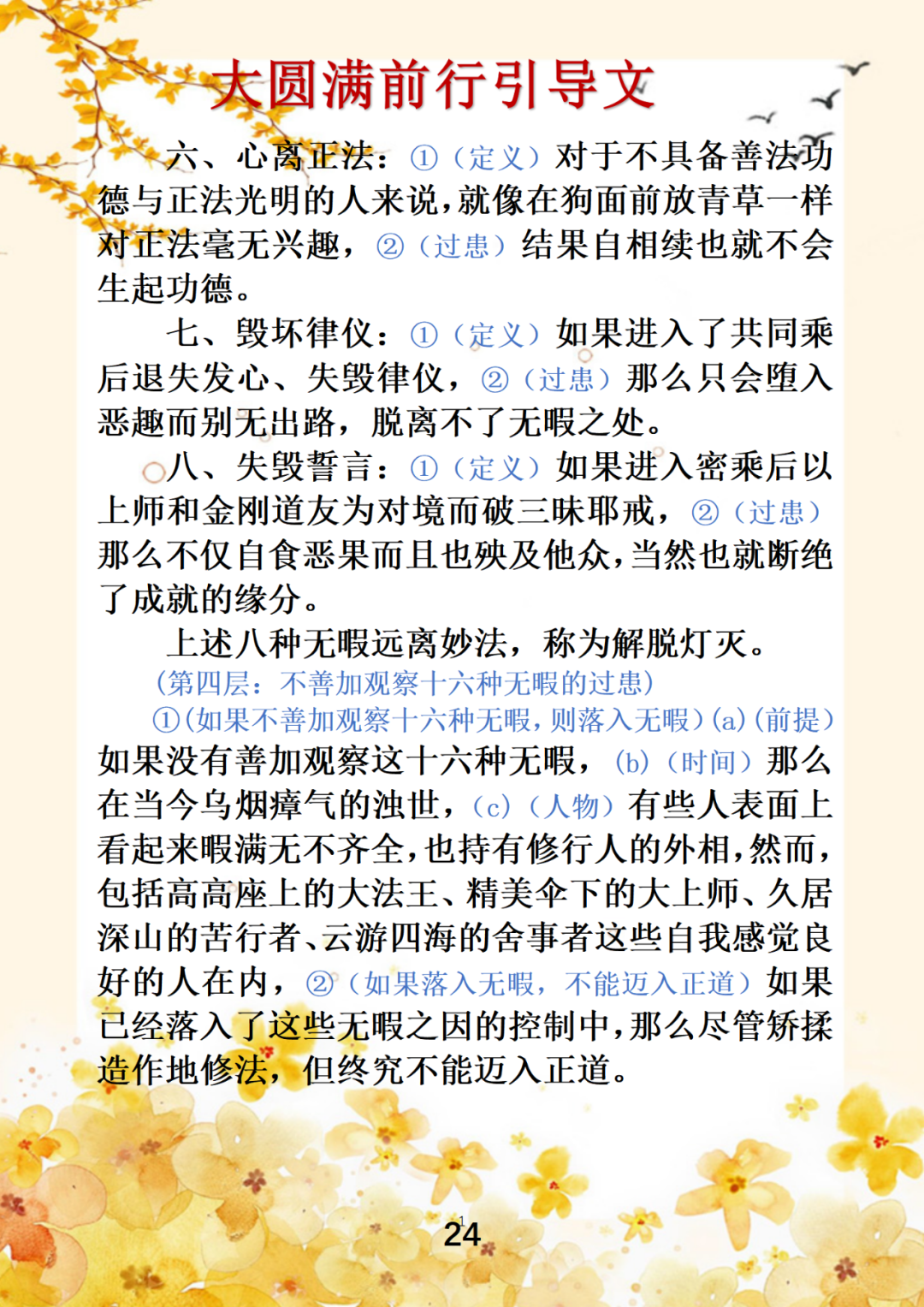 师言:藏chaun佛教有很多修行人,《前行引导文》可一字不漏地背下来。当然,若要做到这样,对《前行》的文字肯定要下功夫,如果下了功夫,那一辈子不会轻易忘记,里面的内容什么时候要用,什么时候即可浮现于心间。华智仁波切的每一句话,希望大家务必要记住。那天学院个别人已发愿背诵《大圆满前行引导文》,希望你们一定要善始善终,如果真能背下来,我敢保证你会变成很好的修行人。