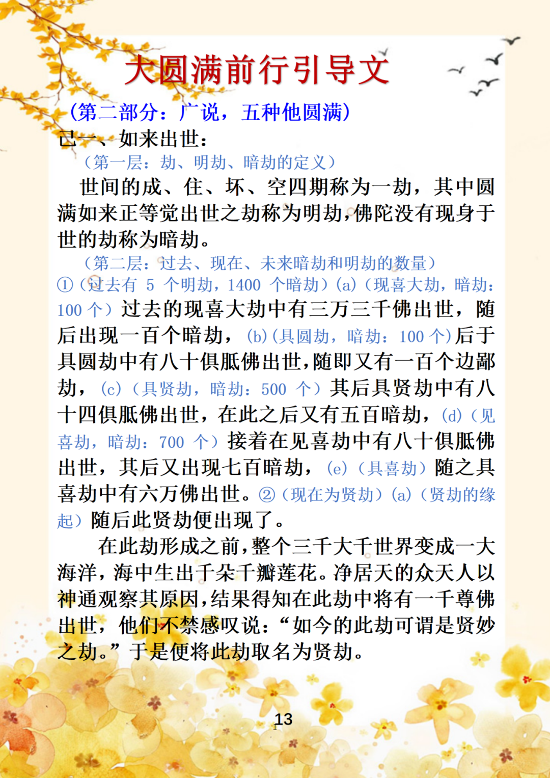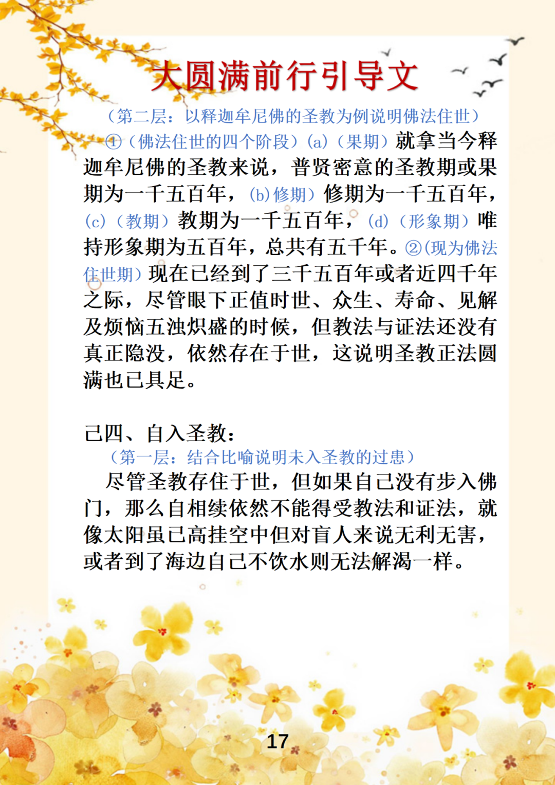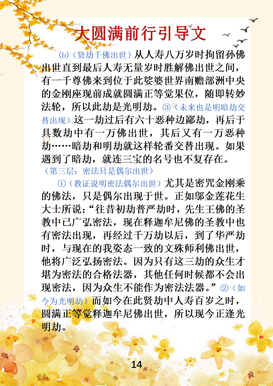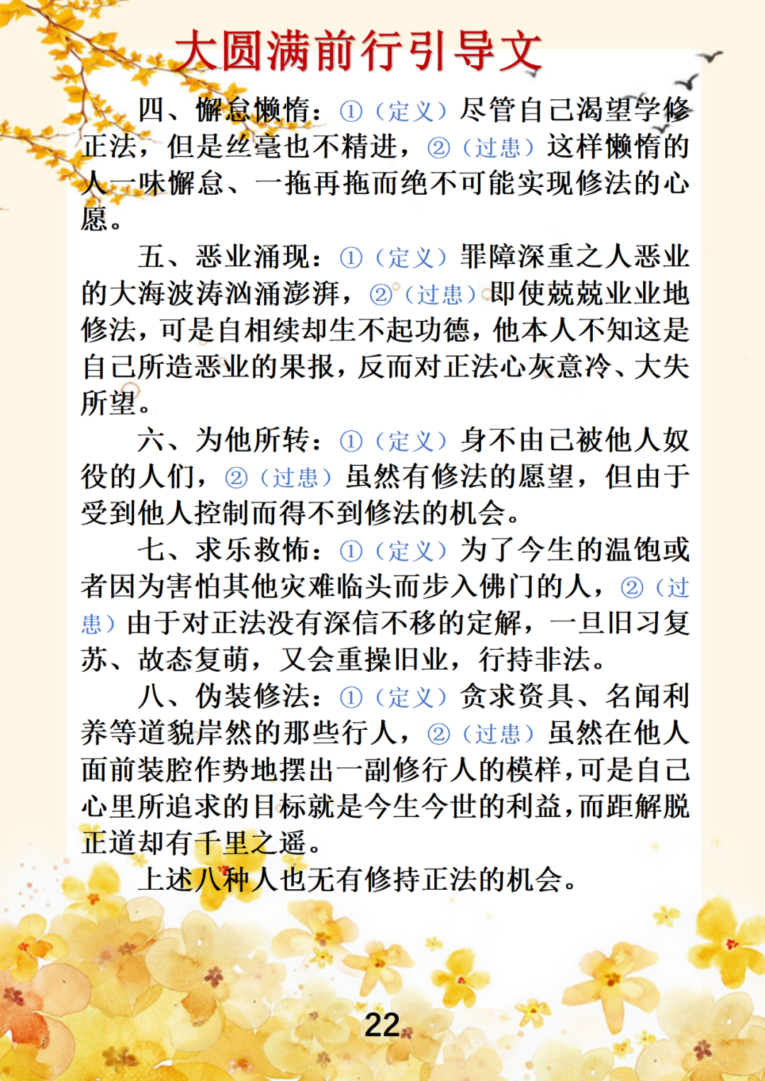师言:藏chaun佛教有很多修行人,《前行引导文》可一字不漏地背下来。当然,若要做到这样,对《前行》的文字肯定要下功夫,如果下了功夫,那一辈子不会轻易忘记,里面的内容什么时候要用,什么时候即可浮现于心间。华智仁波切的每一句话,希望大家务必要记住。那天学院个别人已发愿背诵《大圆满前行引导文》,希望你们一定要善始善终,如果真能背下来,我敢保证你会变成很好的修行人。