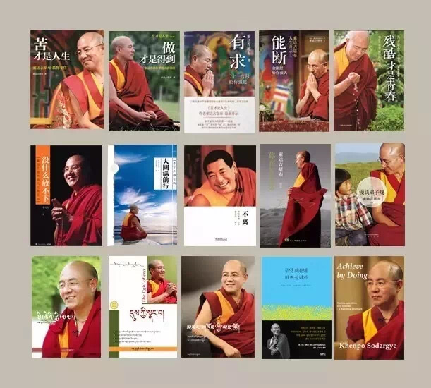 已出版中文简体书籍27本:《苦才是人生》《做才是得到》《残酷才是青春》《能断:金刚经给你强大》《不离》《有求》《你在忙什么》《幸好有烦恼》《漫谈弟子规》《有什么舍不得》《没什么放不下》《大圆满前行》《般若摄颂释》《释迦牟尼佛广传·白莲花论》《百业经》《藏传净土论》《中观宝鬘论广释》《藏密佛教史》《入行论释·善说海》《中观庄严论释》(上、下)《量理宝藏论释》(上、下)《中论密钥》等。其中多本畅销书已有中文繁体、藏文、蒙文、英文、韩文等多个版本,并在全球各地陆续出版。