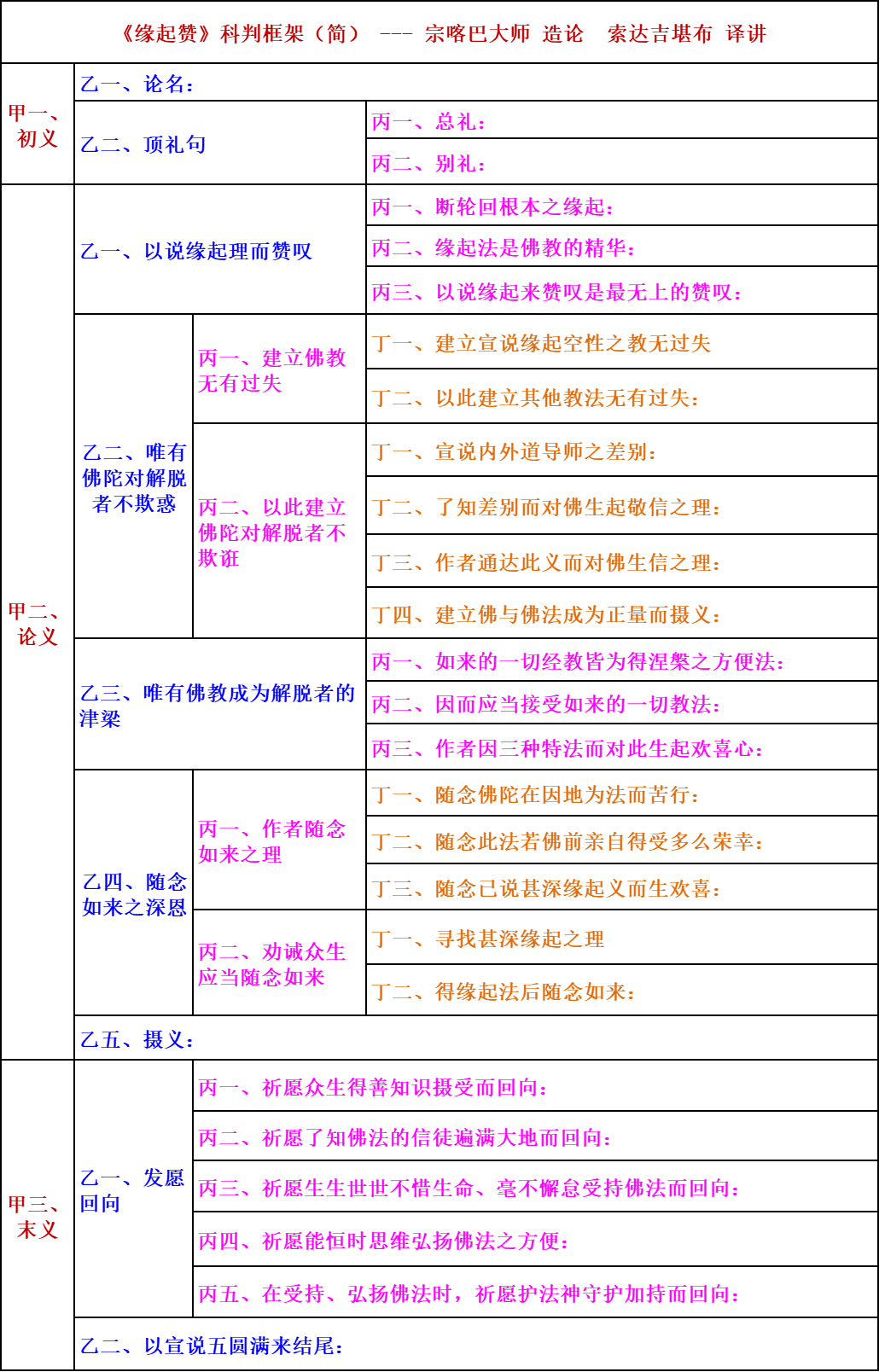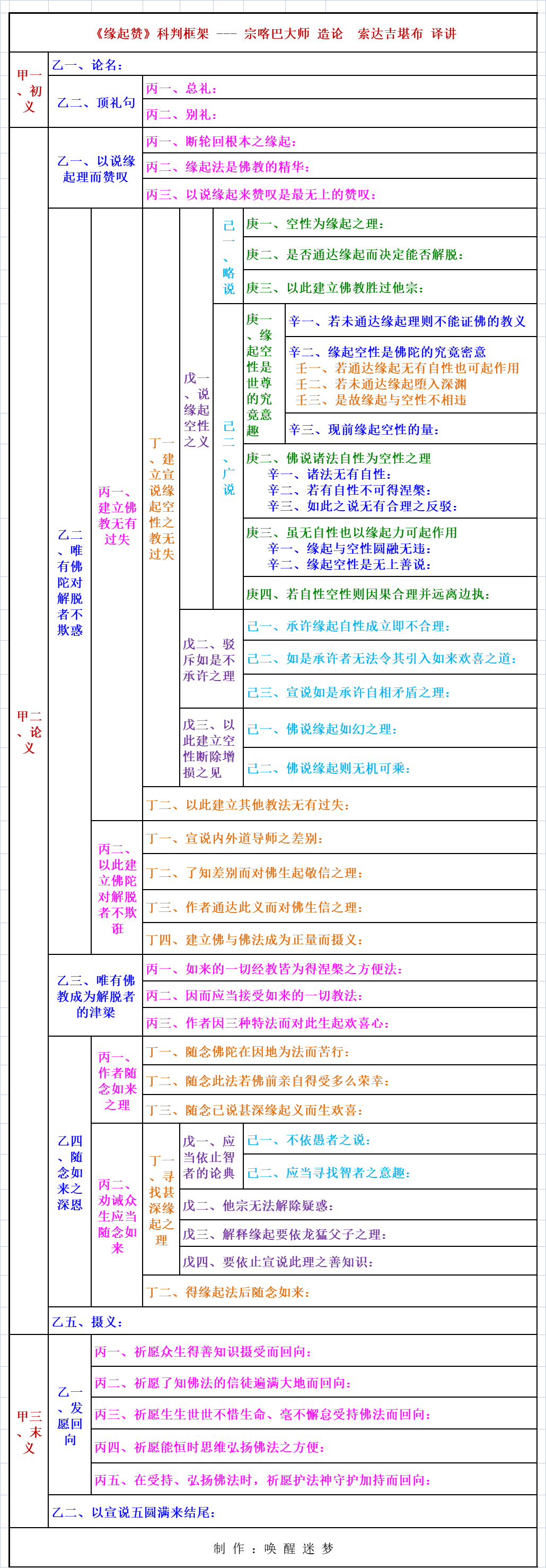 唤醒迷梦 >> 【图片】《缘起赞》科判框架、科判颂词