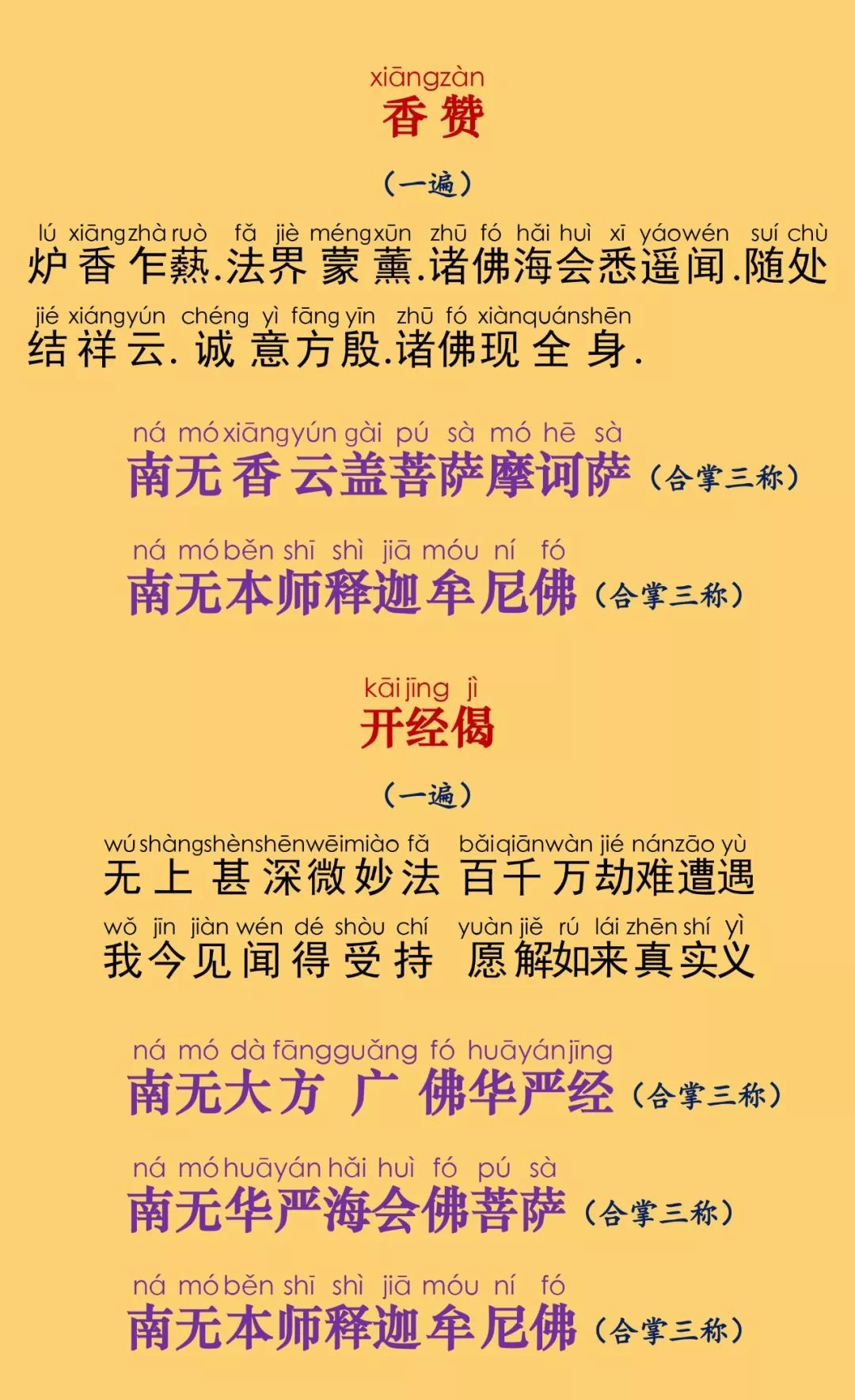 根据《乾隆大藏经》大乘华严部,第0084部,唐于阗国三藏沙门实叉难陀译《大方广佛华严经》(80卷)原藏影印本校正注音。读诵仪轨取自福建莆田广化寺《大方广佛华严经》印本,华严字母根据柏林禅寺《华严字母》印本校正,句读及注音仅供参考。每卷的三个华严字母梵唱音频与该卷的华严字母相对应,由印能法师唱诵,至七十三卷后,每卷为四个华严字母。设计排版说明:本注音佛经内容,由仁慧草堂编辑设计制作,如需转载请联系作者公众号,特此说明。