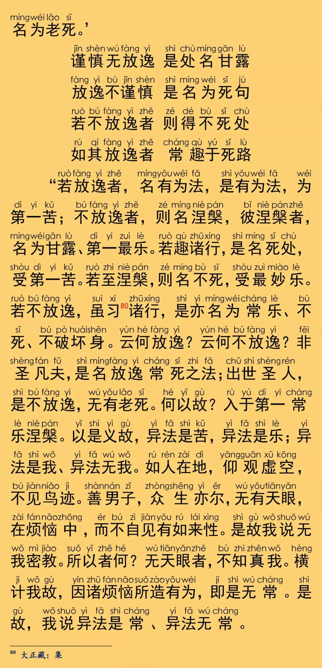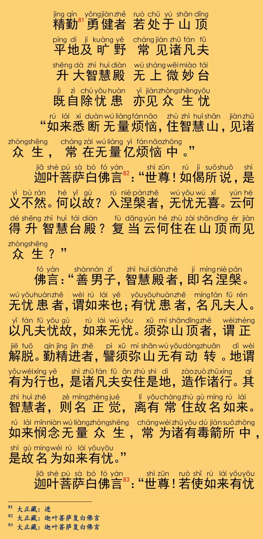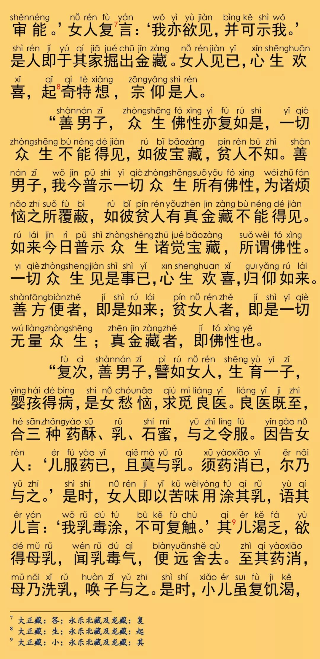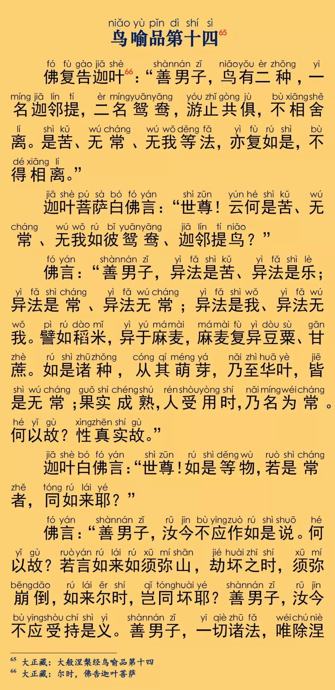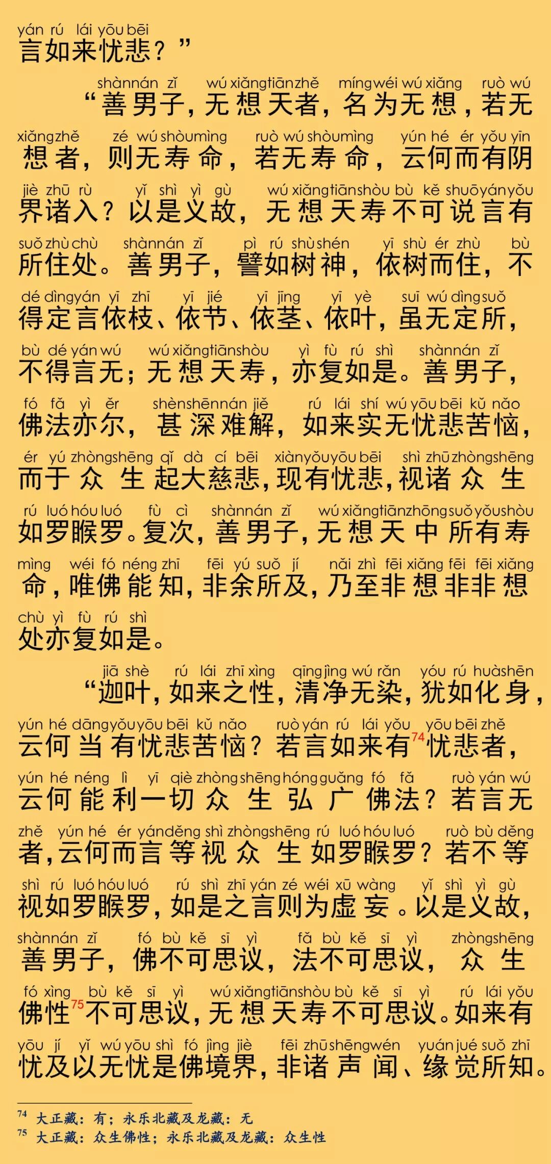 根据《乾隆大藏经》大乘涅槃部,第0110部,北凉天竺三藏昙无谶译梵、宋沙门慧严慧观同谢灵运再治《南本大般涅槃经》(36卷)原藏影印本校正注音。句读及注音仅供参考。设计排版说明:本注音佛经内容,由仁慧草堂编辑设计制作,如需转载请联系作者公众号,特此说明。